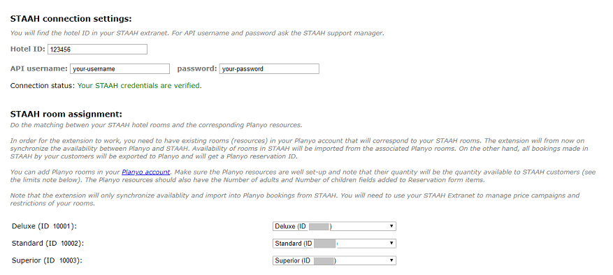 Now you can do the matching between your STAAH rooms and their corresponding Planyo resources.