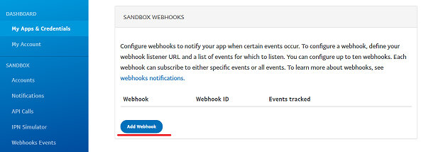 4. In order to allow us to receive notifications about your PayPal transactions, you need to configure a webhook pointing the script on our server.