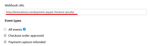 In the Events type section select Checkout order approved, Payment capture refunded and Payment sale refunded. Click Save to submit the settings.
