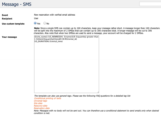 Tutorial: Configuring emails and text notifications sent by planyo (5 / 6)